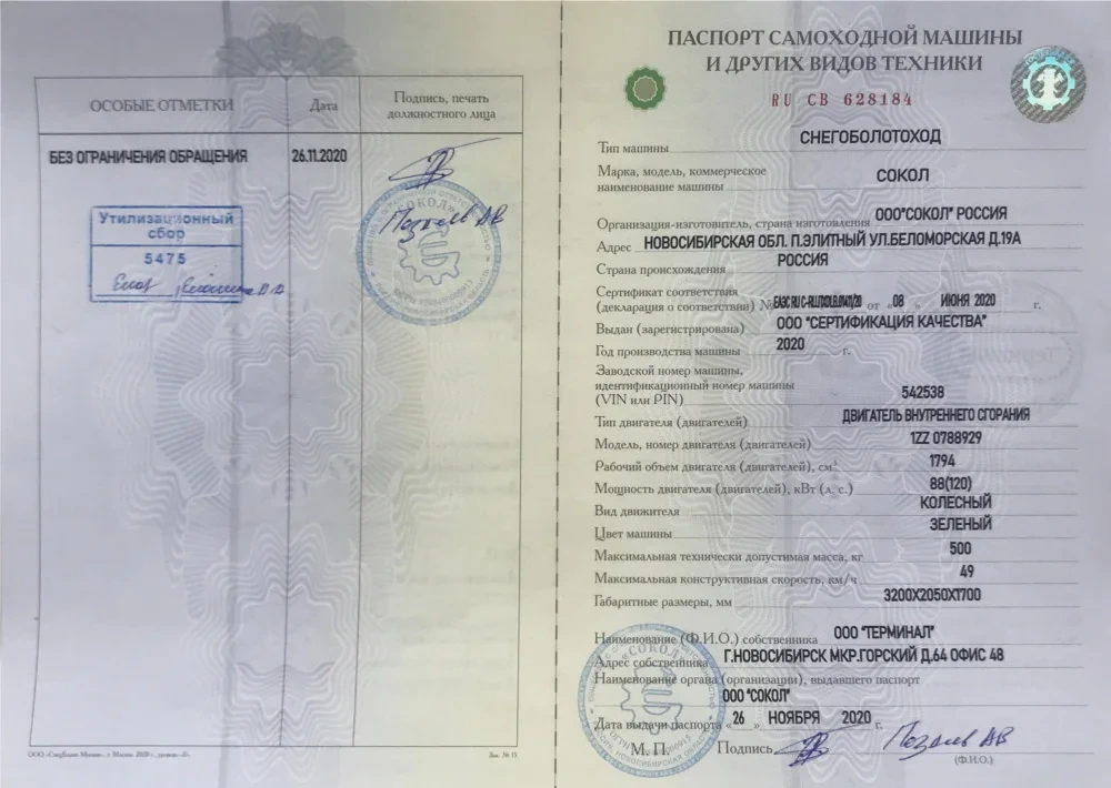 Компания BigATV (ООО «Терминал») имеет все необходимые документы и сертификаты на производство и продажу квадроциклов-вездеходов.
